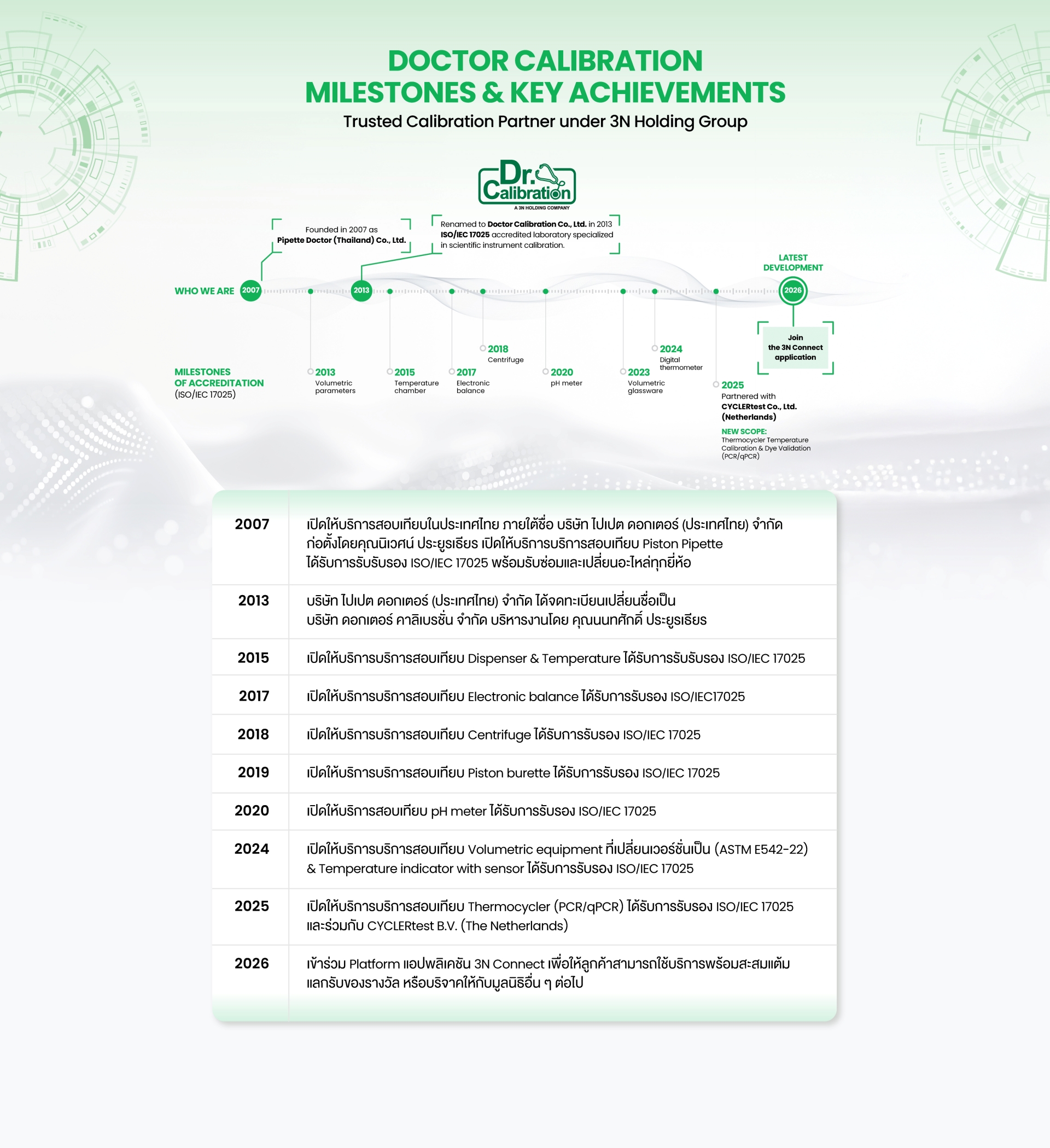 เป็นส่วนหนึ่งของกลุ่มธุรกิจเครื่องมือวิทยาศาสตร์ภายใต้ 3N Holding Group ซึ่งจัดตั้งขึ้นเพื่อรองรับการเติบโตของงานวิจัย ห้องปฏิบัติการ โรงงานอุตสาหกรรม และภาคการแพทย์ในประเทศไทย ได้เปิดให้บริการสอบเทียบในประเทศไทยเมื่อปี พ.ศ. 2550 ภายใต้ชื่อบริษัท ไปเปต ดอกเตอร์ (ประเทศไทย) จำกัด