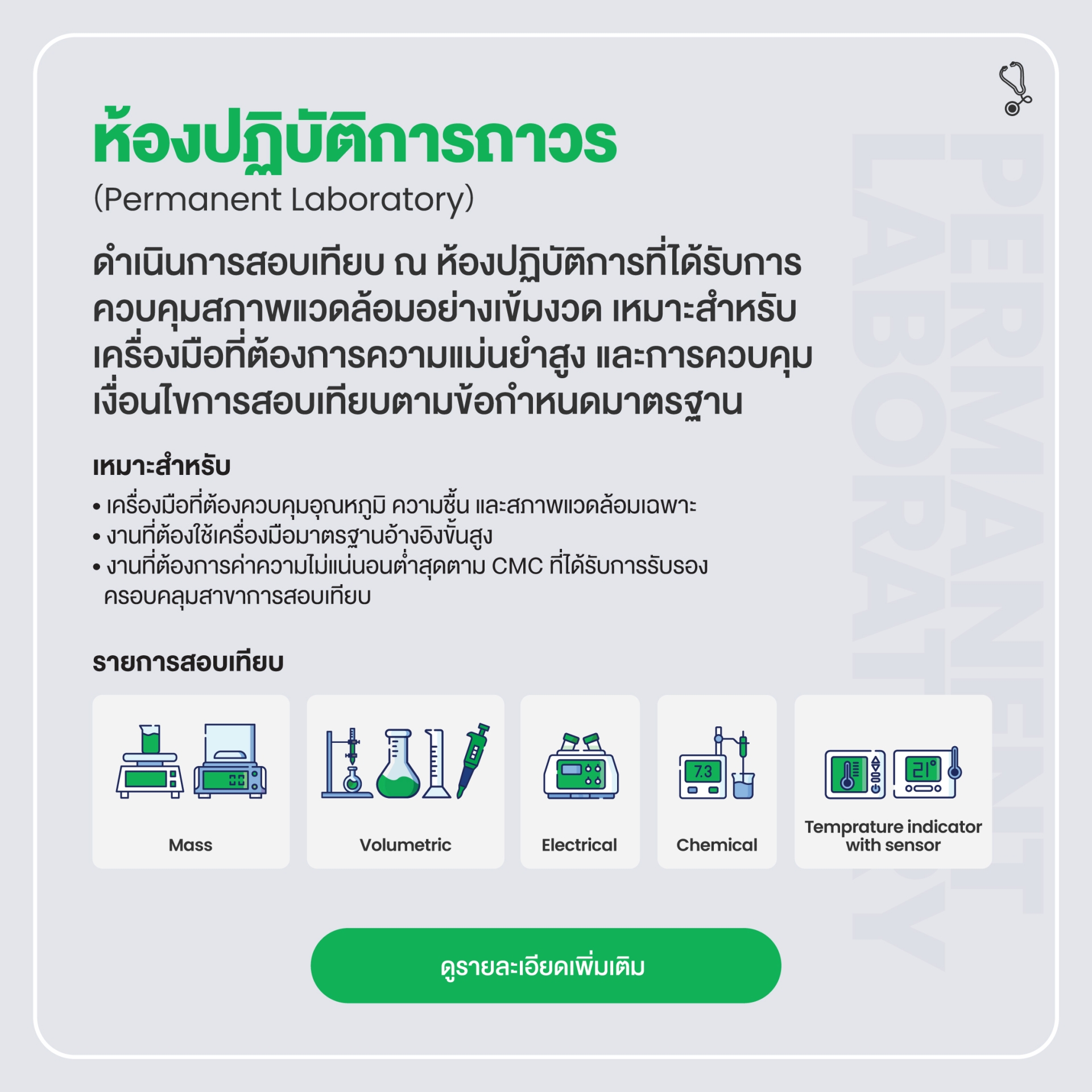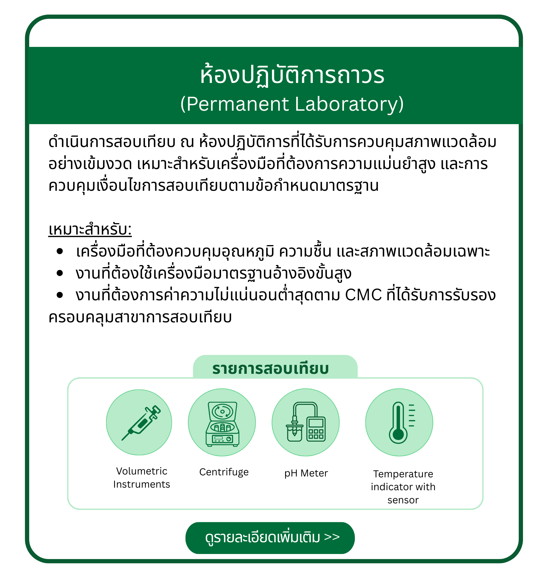 เพื่อรองรับลักษณะงานที่แตกต่างกันของแต่ละองค์กร บริษัท ดอกเตอร์ คาลิเบรชั่น จำกัด ให้บริการภายใต้สถานภาพห้องปฏิบัติการที่ได้รับการรับรอง ดังนี้