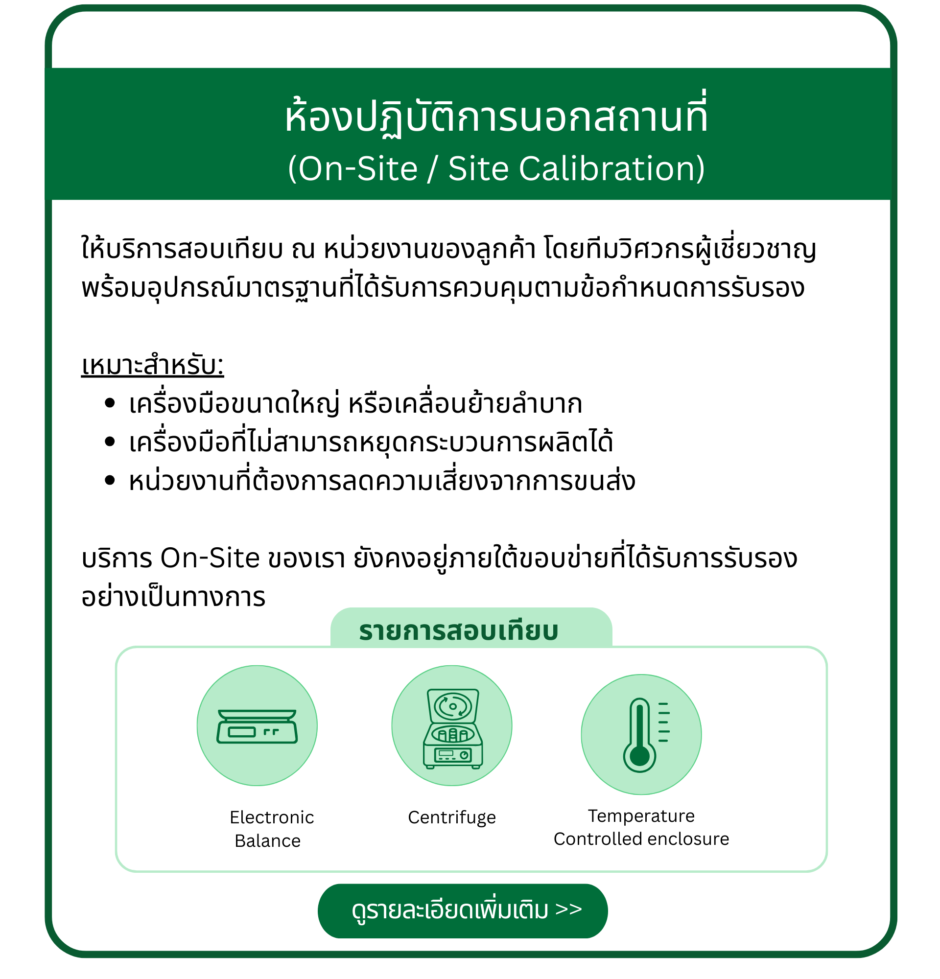 การรับรองนี้ครอบคลุมขอบข่ายสาขาการสอบเทียบ และขีดความสามารถในการสอบเทียบ (Calibration and Measurement Capability: CMC) อย่างเป็นทางการ เพื่อให้ลูกค้ามั่นใจได้ว่าผลการสอบเทียบมีความถูกต้อง โปร่งใส และสามารถสอบกลับได้ตามหลักสากล